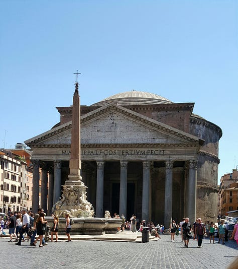 And then one day I find myself walking before the sun rises, before Rome is awake, when the dust in the Forum is undisturbed and I can pass through it and make no impression, as though I don’t exist at all. In the piazzas it is possible to hear the water tumbling from Bernini’s sculptures… and I hear my own soft footsteps echo in the Pantheon as I walk to the center of the multi-colored marble floor to watch the circle of light slowly traverse the ceiling.